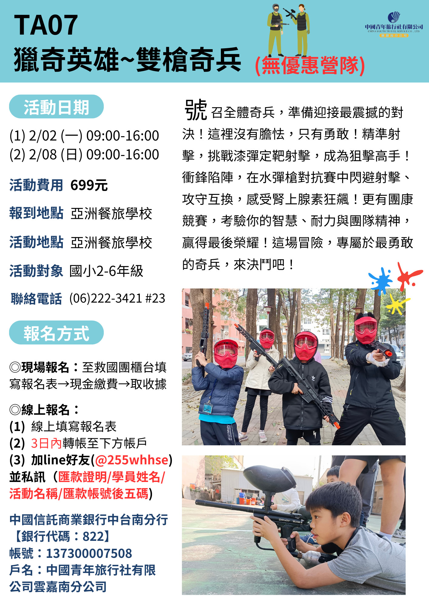 115年冬令營:【B主題營隊】TA07 獵奇英雄~雙槍奇兵