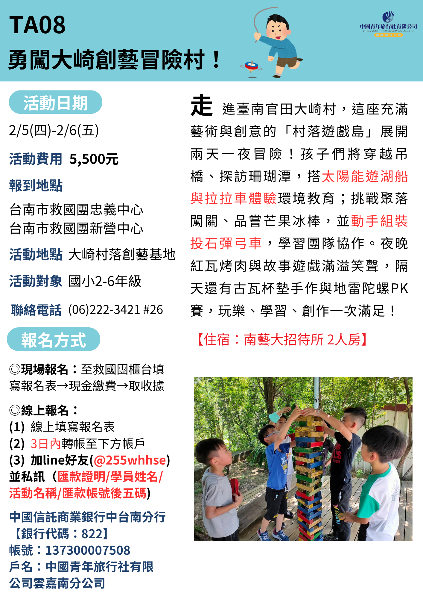 115年冬令營:【B主題營隊】TA08 勇闖大崎創藝冒險村!