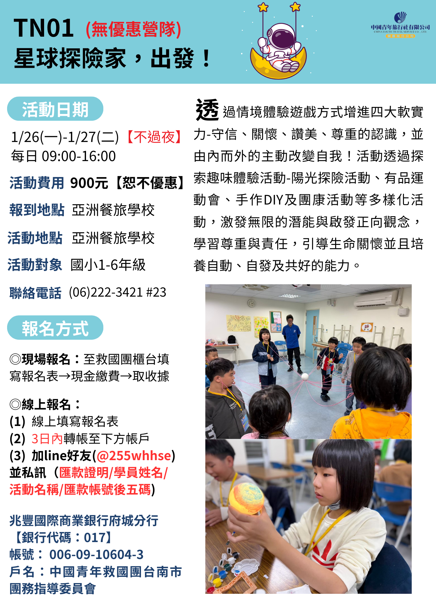 115年冬令營:【C特色營隊】TN01 星球探險家,出發!