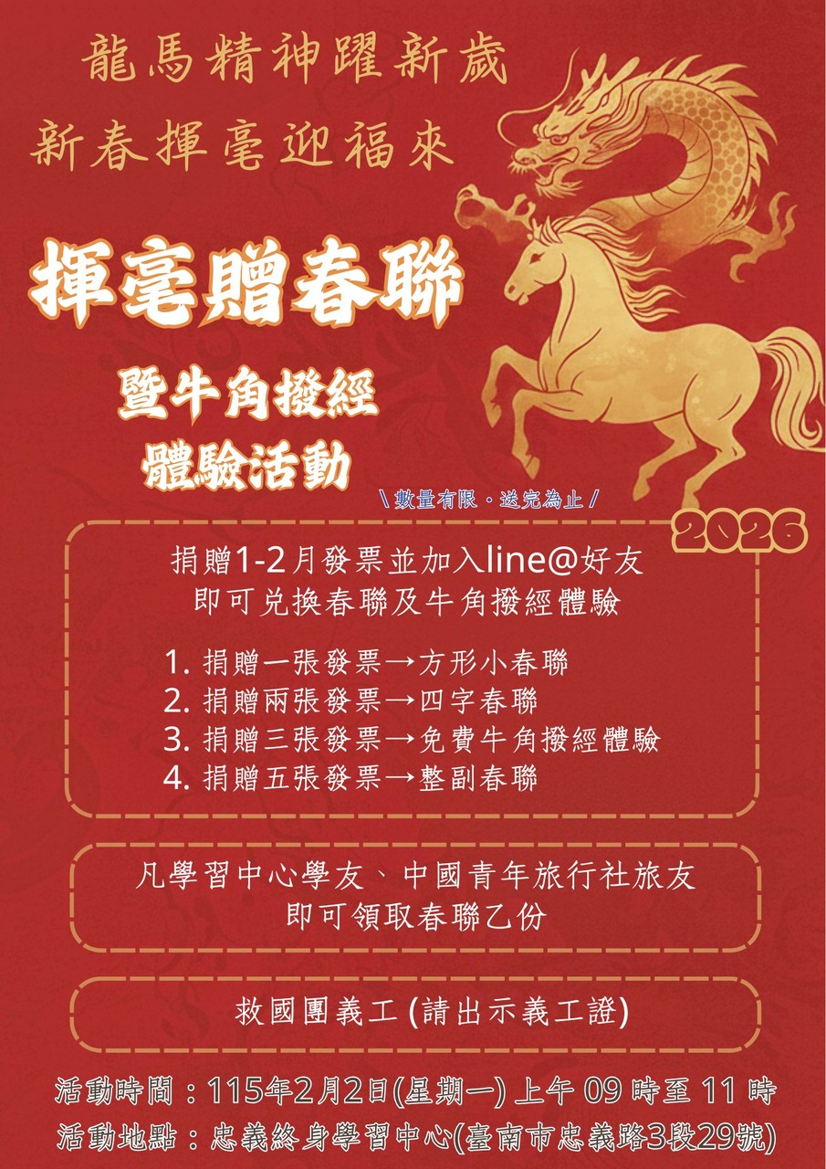 活动地点: 救国团忠义学习中心(臺南市北区忠义路三段 29 号)